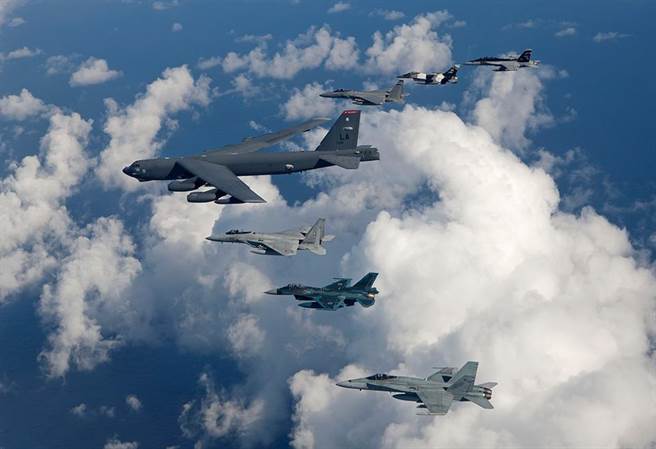 美軍另一款現役的長程戰略轟炸機:B-1B「槍騎兵」。(圖/美國空軍)如今,隨著北韓局勢仍處在「未爆彈」狀態,美軍亦將多架B-52移駐關島,作為繼B-1B之外,另一種隨時可威嚇平壤的長程戰略轟炸機。事實上,2016年北韓執行第4次核試驗時,美軍就曾派遣B-52「同溫層堡壘」轟炸機(B-52 Stratofortress)飛越南韓烏山基地上空,向平壤發出警告,也讓這架已服役60多年的轟炸機,持續在天際展現其威力。
