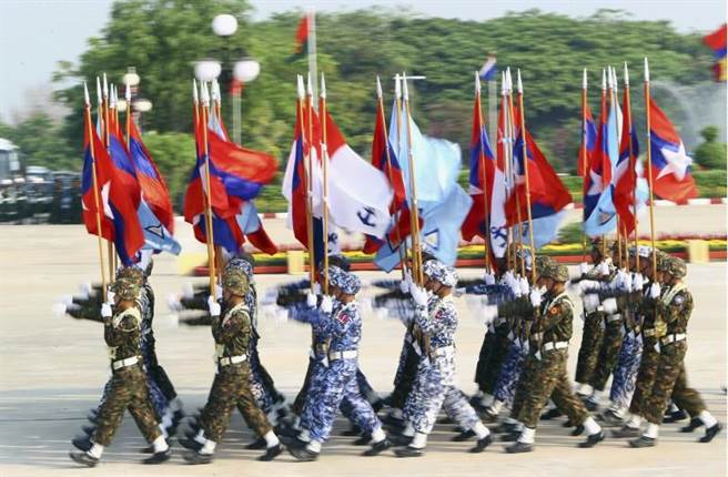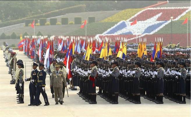 緬甸軍隊行閱兵儀式。(圖/美聯社)