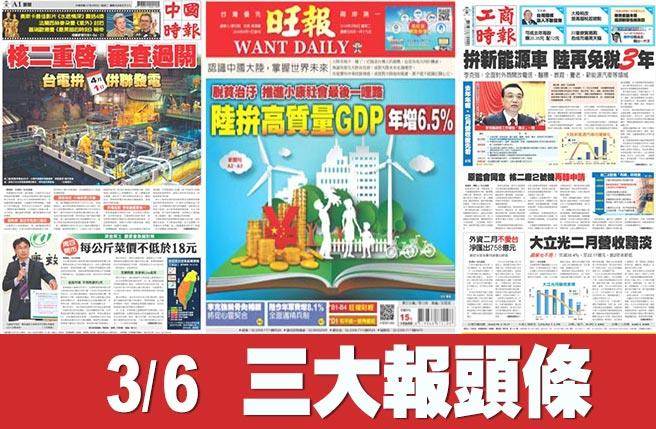 3月6日三大報頭條