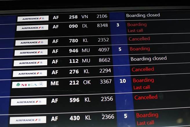 法國航空(Air France)上月22日發動集體罷工,多列航班都遭到取消。(圖/美聯社)本周末恰逢西方國家的復活節假期開始,法國當地卻面臨了法航帶頭的集體大罷工事件,不僅航空、鐵路、能源、超市、學校、司法等各大行業都開始進行罷工,勢必對民眾造成很大影響,尤其是鐵路工人打算長期抗戰3個月,可能讓遊客出行的計畫都泡湯。