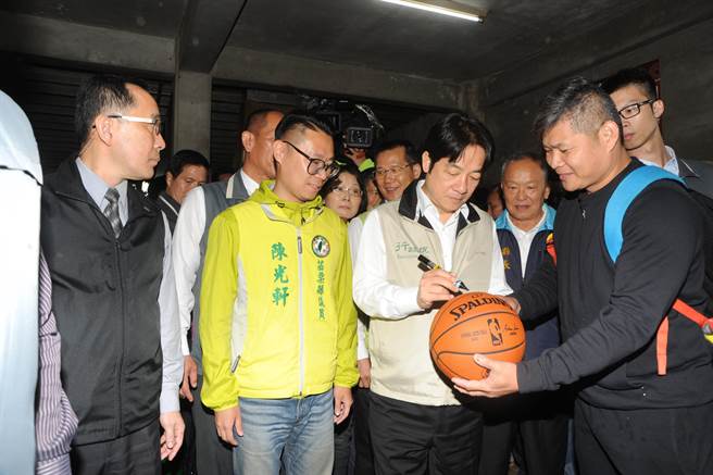 賴揆到頭份市關心推動浪漫台3線進度,粉絲請他簽名留念。(陳慶居攝)賴清德6日下午率客委會主委李永得等行政院團隊,由苗栗縣長徐耀昌及頭份市長徐定禎等人陪同,參觀日新茶園設備了解東方美人茶製程和茶園經營,邊品嘗1斤2、30萬元的特等膨風茶,邊聽取茶農心聲,他允諾由農委會研議提高茶園復耕及乘坐式採茶機具補助標準。