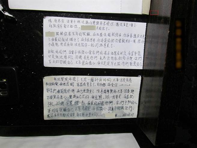 陳留下遺書給親人:「原諒用這種方式結束生命不想拖累任何人,不要救我!」等字眼。(張妍溱翻攝)「你明天看不到我了!」台中市已婚陳姓男子日前向友人借保時捷跑車獨自至汽車旅館服了近30顆安眠藥及一罐威士忌企圖尋短,並傳簡訊給友人驚覺趕緊報案,警方獲報趕到現場,發現陳留下一封遺書:「原諒用這種方式結束生命不想拖累任何人,不要救我!」等字眼,警方懷疑可能家庭及感情因素導致,立刻通知救護人員到場送醫急救即時救回寶貴性命。