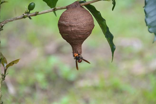 日月星舞探訪者多,且為咖啡講習重要基地,為避免意外發生,蜂巢已於19日傍晚摘除。(沈揮勝攝)曾獲日月潭精品咖啡評鑑冠軍、魚池鄉知名咖啡農場「日月星舞」,負責人沈艷志、沈詠為父子日前在園區發現1個狀似倒掛花瓶的昆蟲巢位,19日因為好奇伸手碰觸,豈知開口處太脆弱出現斷裂,幾隻虎頭蜂瞬間衝出、還猛追數十公尺,所幸未受到螫咬。