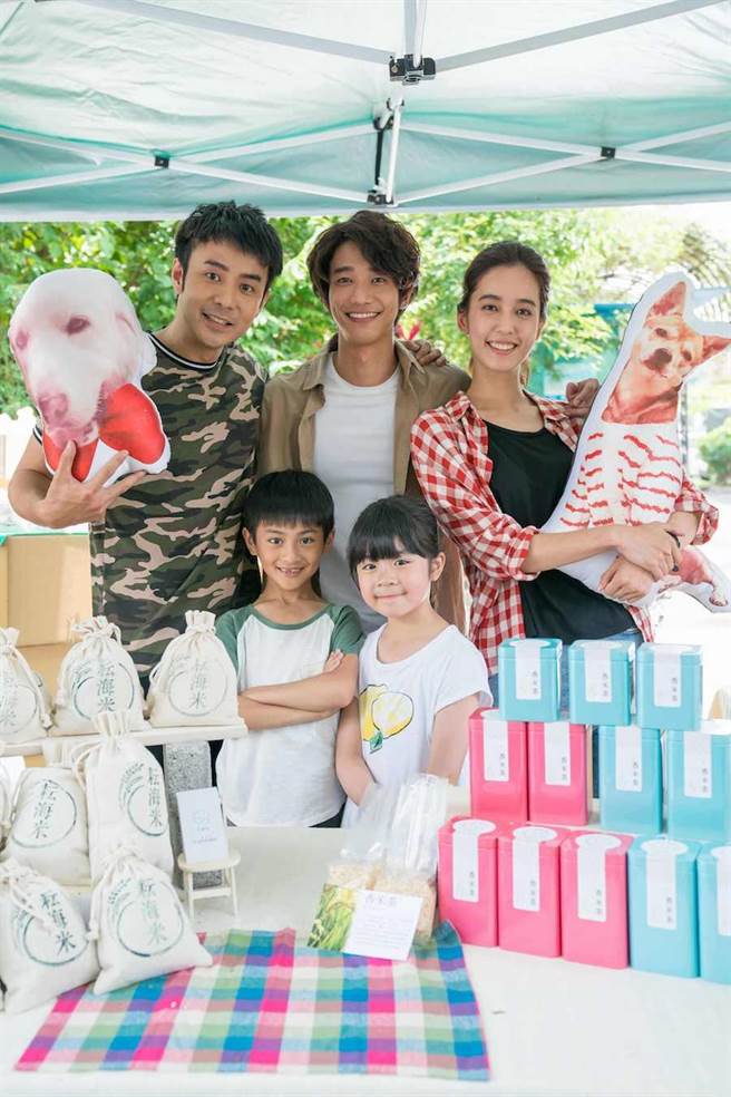 劉子千(左起)、劉以豪、陳庭妮及童星。(歐銻銻娛樂提供)
