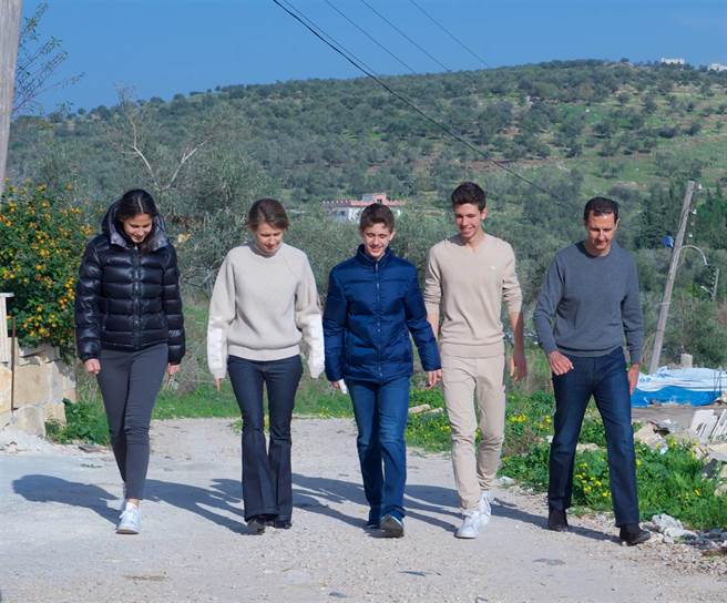敘利亞總統阿薩德(圖右)帶著夫人艾斯瑪·阿薩德(圖左二),和三名子女出遊。(圖/敘利亞總統府臉書)