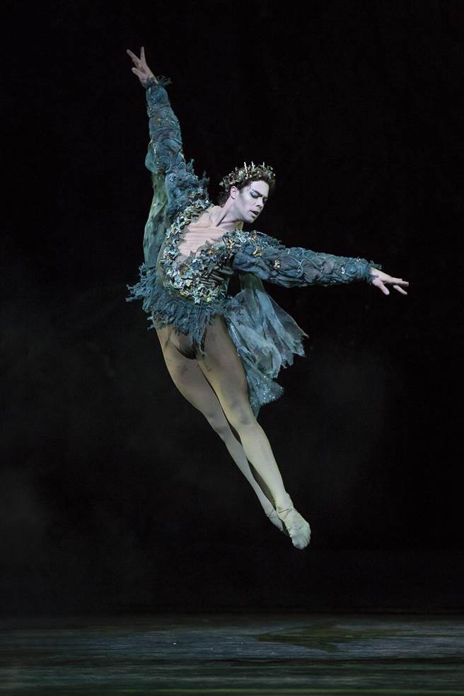 全球炙手可熱當紅舞星,有「芭蕾舞界布萊德彼特」之稱的前英國皇家芭蕾舞團首席馬修.高頓,將隨基輔國家芭蕾舞團首次來台,並在兩大芭蕾舞劇《天鵝湖》、《睡美人》裡主演王子。圖為他過去演出《仲夏夜之夢》的片段。(牛耳藝術提供)