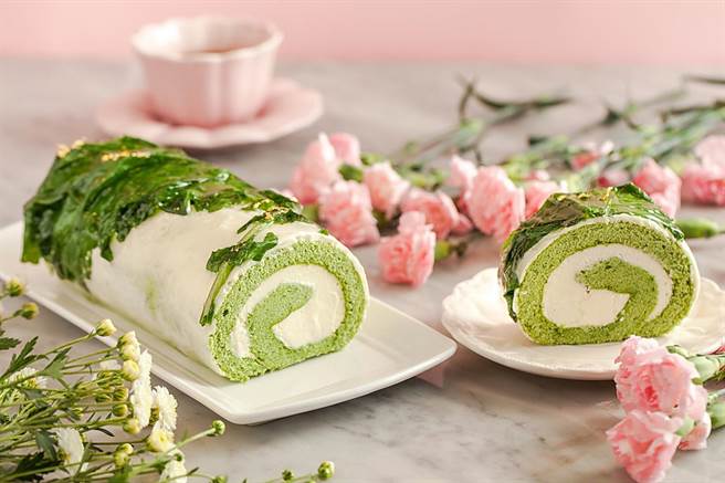同樣搭上蛋糕捲流行列車,華泰王子大飯店一樓的驢子烘焙坊,今年首度以自有農場出產的羽衣甘藍為素材,無添加任何色素,將菜葉直接披上乳酪卷,再撒上細緻金箔,蔬菜自然暈染出清新的綠色,推出〈羽衣甘藍鹹乳酪卷〉。甘藍菜葉而富含纖維質與營養成份,在戚風蛋糕上暈染出清新的綠,混搭英國馬爾頓天然海鹽乳酪鮮奶油,柔和悠長的鹹味,與蔬菜純粹的鮮甜達到完美平衡。原味輕香縈繞味蕾間,彷彿微風徐徐,徜徉於晨間草地,是健康的味道。