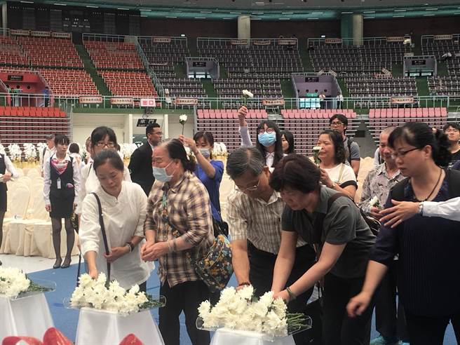 追思會的最後親友紛紛獻花,場面十分哀戚。(葉臻攝)桃園市4月28日發生敬鵬工業大火,造成埔心分隊小隊長游曜陽、平鎮分隊小隊長李翰霖,隊員林尉熙,和山峰分隊員余佳昇、林伯庭、游博瑜殉職,桃園市政府在17日上午舉行追思會,桃園市消防代理局長龍榮森會後受訪表示,消防局救災APP的平面圖上看不見機台、危險物品、槽體的位置,未來會建議中央修法,要求列管工廠都要提供相關資訊平面配置圖,以利消防員救災。