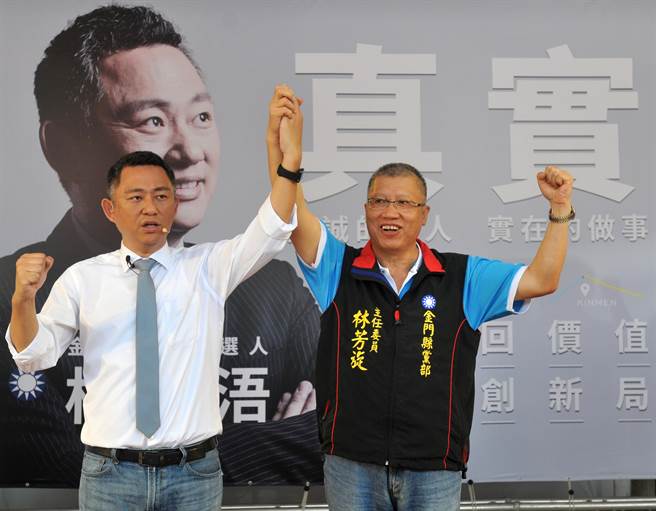 國民黨金門縣黨部主委林芳旋強調,楊鎮浯是找回金門價值,開創金門新局的優秀人才。(李金生攝)