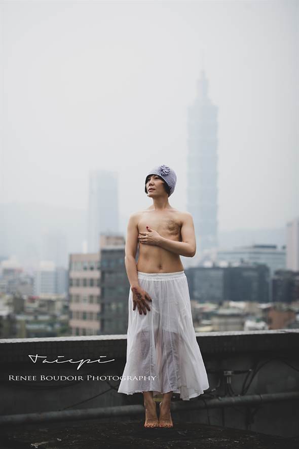 Renee拍攝的乳癌患者希望透過乳癌傷疤的照片,讓女人可以找回自己內心的力量,按下快門時Renee很震撼。(Renee提供)