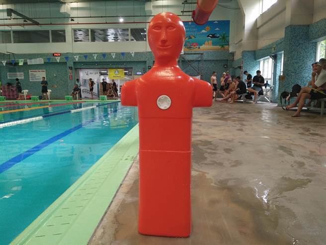 半身假人重達30公斤。(消防局提供)消防員「漢草」不是蓋的!新竹市消防局舉辦年度救生技能競賽,消防員要游完指定距離,還得在水中攜帶30公斤假人,執行拋繩救生,困難度遠超過一般泳賽,但參賽者們卻游刃有餘,展現超人般的體力。