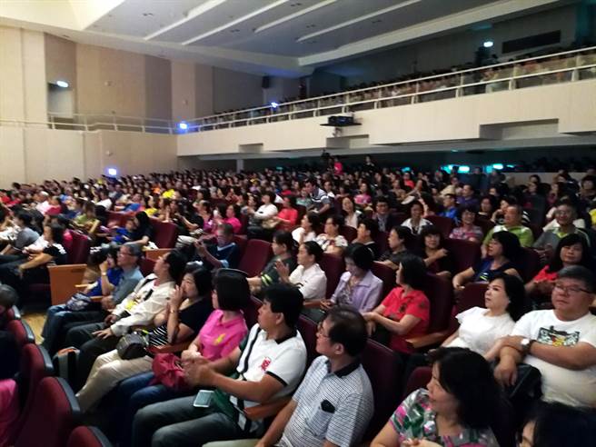 演唱會現場爆滿,一首接一首國台語經典老歌,志工聽得如癡如醉。(李義攝)