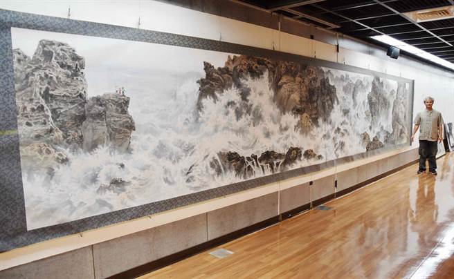 陳玄茂展出作品最大一幅水墨畫長達8公尺,成整個展覽場焦點。(呂妍庭攝)