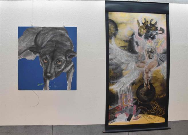陳玄茂還特別挑選兒女各一幅作品一同展出,迥異畫風引人關注。(呂妍庭攝)