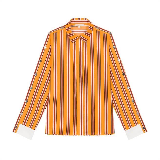 Maje反摺條紋襯衫,6960元。(Maje提供)俄羅斯裔女星安妮精通俄、英、中、日文,不只擔任主持人,還因喜愛做菜,即將在8月出版食譜書,展現多樣才華。