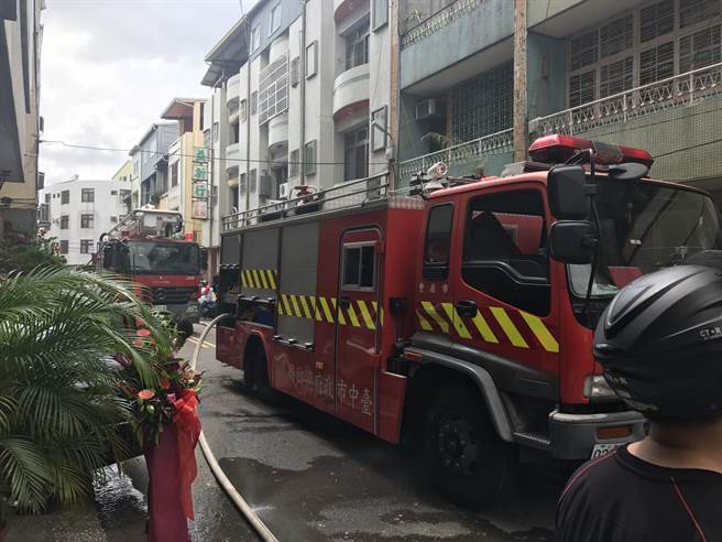警消出動大批人車前往灌救,10分鐘後控制火勢,並將嗆傷的屋主送醫急救。(王文吉翻攝)
