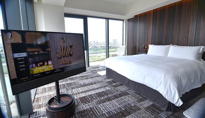 西門町〈宿之酒店〉內的〈河宿〉房型,用的也Simmons席夢思臥床,房內並配置samsung的49吋曲面電視。(攝影/姚舜)