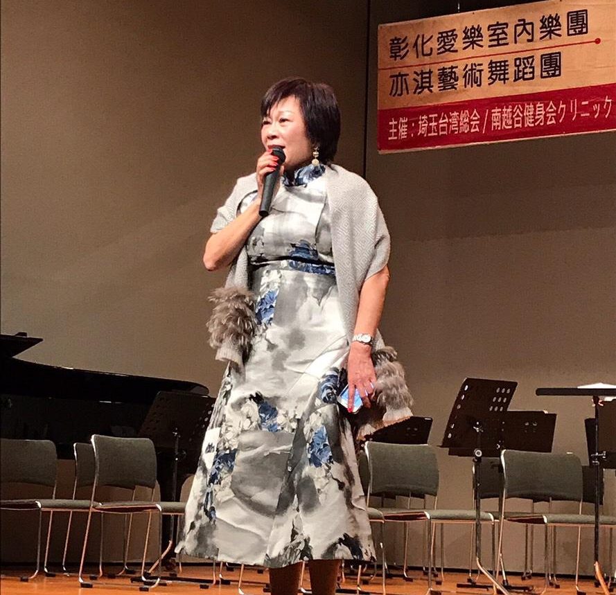 埼玉台灣總會紀秋美會長表示今天非常榮幸與高興能邀請到彰化愛樂室內樂團和亦淇藝術舞蹈團來日本埼玉演出一埸非常棒的”新春台日文化交流音樂會”,讓僑居日本的台灣僑胞和日本朋友們感受到新春溫暖。感受到台灣音樂文化的進步與成長。並希望藉此機會能夠鼓動新興的一代不斷嘗試與更新進步,把台灣之光散發到世界各地。