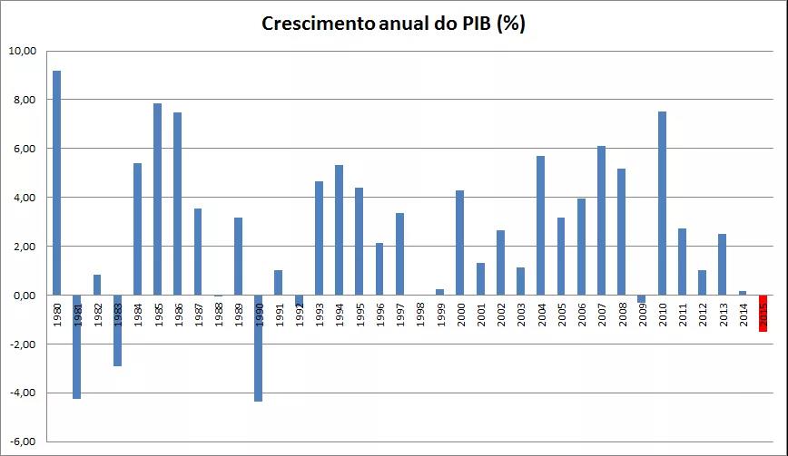 2014 年,巴西經濟曾經位列世界第七,但因為國際大宗商品價格下滑和巴西國內貪腐案造成的政壇動盪,使得該國連續兩年經濟衰退,陷入有史以來最嚴重的經濟危機之中。根據巴西國家地理統計局公佈的資料,2015 年巴西經濟負增長3.77%,2016 年負增長3.6%。