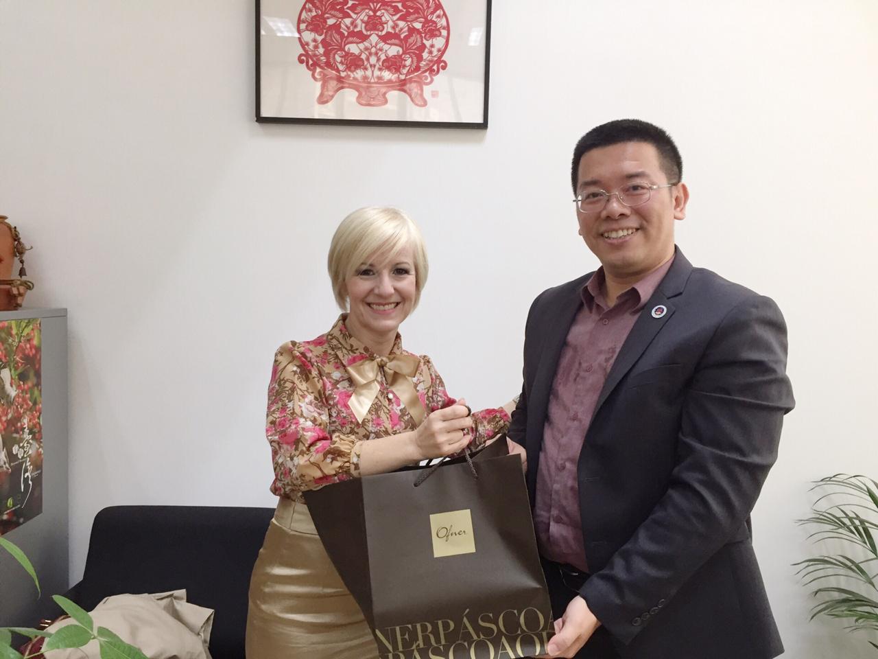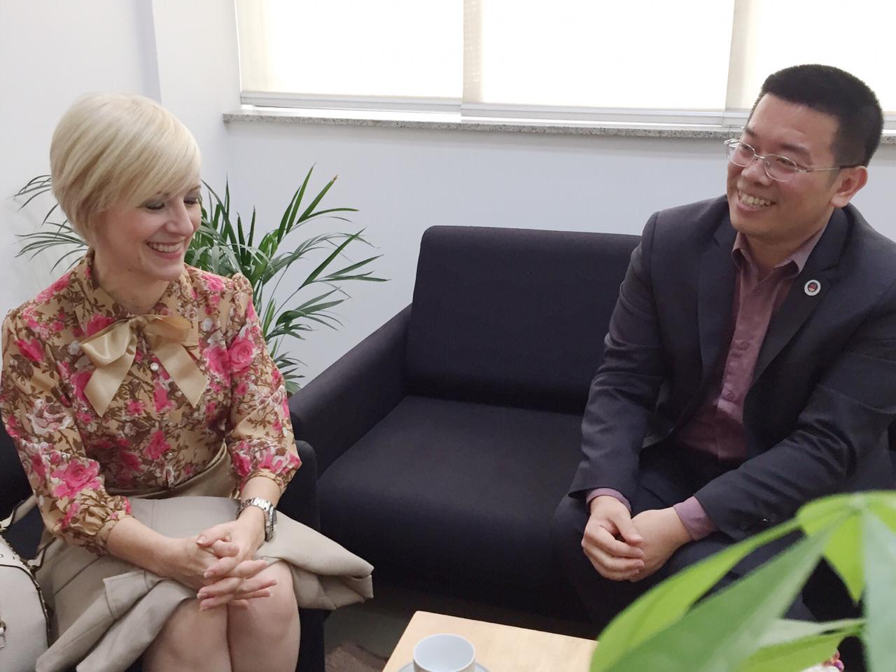 Damaris州議員一行人抵達僑教中心門口,即受到詹前校主任熱烈歡迎,隨即在主任辦公室互相交流,雙方相談甚歡,也就如何加強服務臺灣僑胞交換意見。聖保羅文教服務中心主任詹前校首先恭喜身為「臺灣媳婦」的Damaris當選新科聖保羅州議員,感謝她在百忙之中抽空來拜會,對於她未來將致力服務臺灣僑胞表達感謝之意。「海外僑胞是國民外交相當重要的推手,希望未來Damaris可以適時為中華民國臺灣發聲,並為居住在巴西的臺灣僑胞謀福利」,相信在她努力下,更能增進中華民國台灣和聖保羅州政府在文化經貿合作關係,詹主任介紹僑教中心的主要設施,說明服務僑胞各項工作,希望Damaris州議員多給我們僑教中心支持協助合作。
