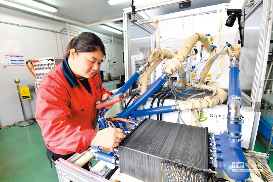 江蘇南通百應能源有限公司的檢測員正在對氫燃料電池進行電堆性能測試。