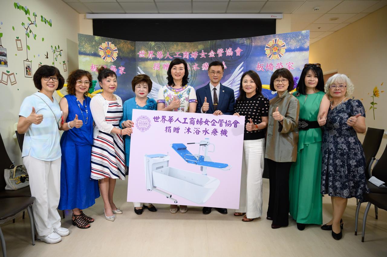 「 台北綜合報導 」在台灣、全球有66個分會的世界華人工商婦女企管協會總會,會中成員除了都是優秀女企業菁英,更是積極推動各項慈善工作,這次針對兩個機構的捐贈活動,分別是由劉琍綺總會長在6月12日偕同施郭鳳珠榮譽總會長、謝美香監事長、莊住維副總會長、袁月莉執行長也是台北市分會副會長、黃宇婕財務長、鄭玉廷副執行長、真善美分會唐麗娟會長等一同前往板橋榮民之家舉行沐浴水療設備捐贈儀式。