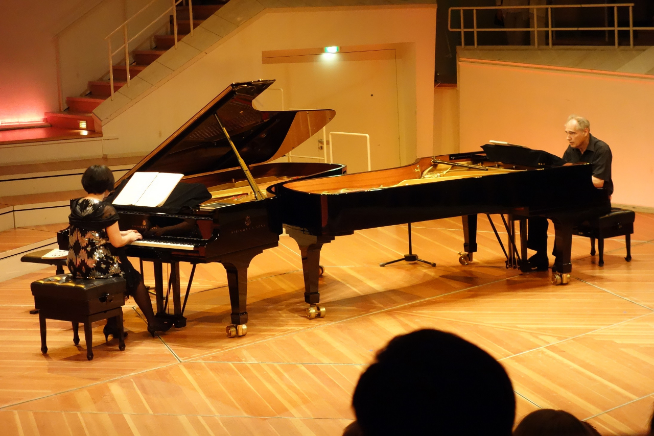 葉綠娜(左一)與魏樂富(右一)雙鋼琴演奏