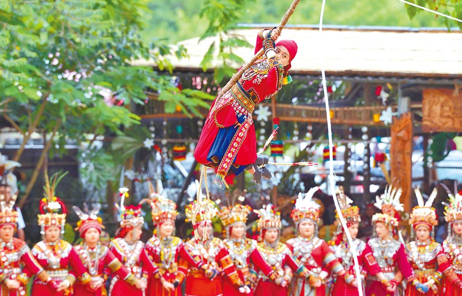 東魯凱族達魯瑪克部落小米收穫祭,未婚年輕男女藉由少女盪鞦韆傳達愛意。