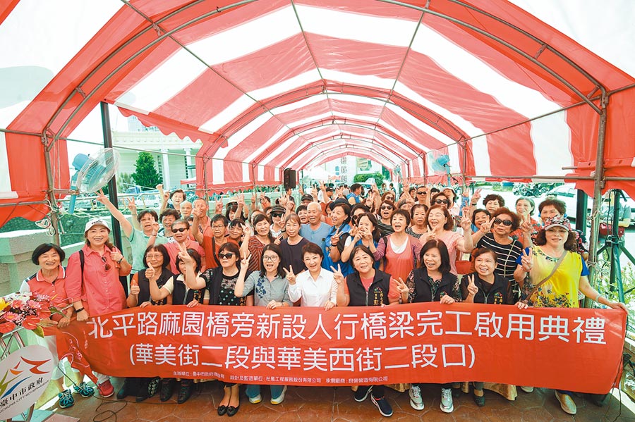 台中市北區麻園橋旁,因未規畫人行道,導致人車爭道,險象環生,市府於麻園橋旁兩側新設人行橋,連接華美街2段與華美西街2段,22日舉行完工啟用儀式,因位於西屯與北區交界處,當地區長與多位民代及地方民眾,到場歡慶啟用。