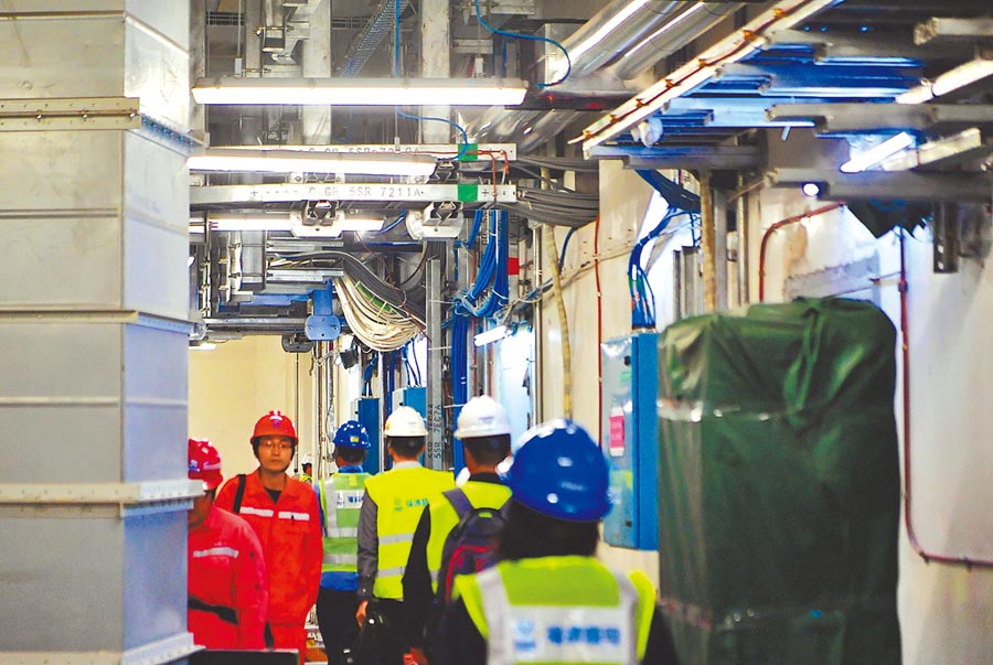 2018年5月在廣西防城港,大陸自主三代核電「華龍一號」示範項目完成穹頂吊裝。