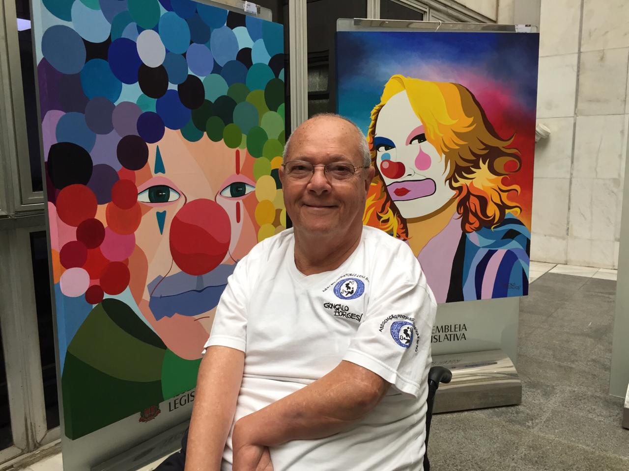 Gonçalo Borges:口足藝術家,他除了專精油畫、壓克力畫、水彩外,2年前開始嚐試陶瓷創作,沒想到就獲得銀牌奬,讓他很榮幸在60位藝術家陶藝展中脫穎而出,參加這次6位藝術家陶藝展。回想從小兩手就有問題,常常受到別人不一樣的眼光,讓他感到很自卑,媽媽就由內地帶到聖保羅,把他送到特殊學校去學習,老師們發現他很有畫畫天份,開始教他用嘴巴畫畫,從此認真的學習往繪畫方面發展,由特殊照顧中心出來,到普通學校去上課,所以進入藝術大學專攻繪畫,讀到碩士畢業。藝術改造他的人生,使他的人生更樂觀,更有目標。他現在從事教畫畫工作,也結婚,有2個女兒,自己駕駛車子過著平常人的家庭生活。