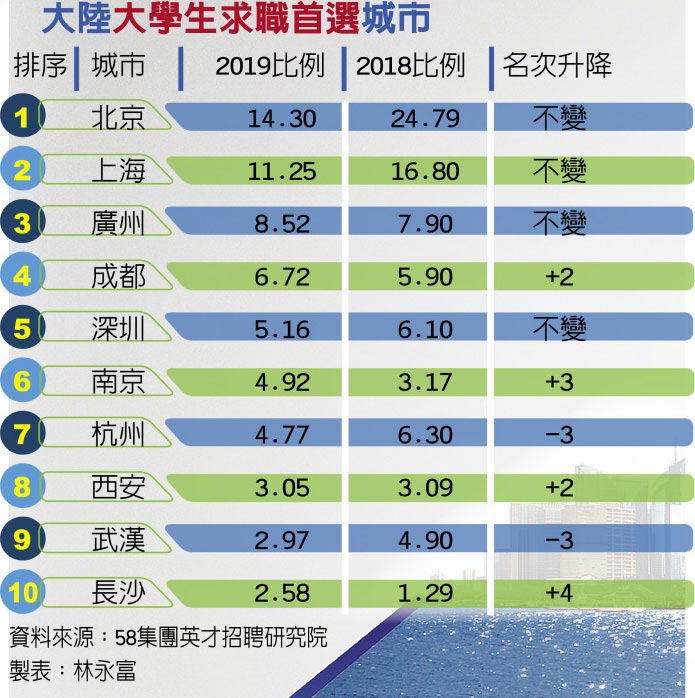 陸青求職愛好 首選仍是北上廣