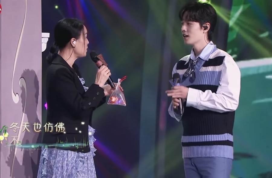 那英與肖戰在昨(1/12)登台合唱〈被風吹過的夏天〉,演出中,為展現歌詞意境,肖戰邊唱歌邊將塑膠袋裝的小金魚遞給那英,製造清新的甜蜜氛圍,肖戰交出禮物後,轉身走位繼續演唱,然接手禮物的那英卻疑似因為袋子上沾了水太滑,竟在跟著肖戰走往舞台中央時,走沒幾步就手滑將金魚掉在地上,她連忙撿起袋子,裝鎮定繼續演唱。