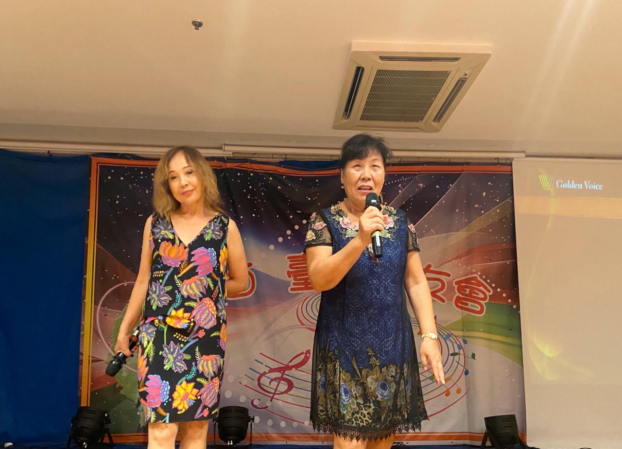 歡樂節目一開始,9位媽媽們上台向大家拜年,一起歡唱恭喜恭喜賀新年歌,炒熱過新年的氣氛。鄭淑真會長首唱「借問愛情」後,貴賓和僑胞一連串的唱歌跳舞,帶給大家歡樂過新年的氛圍。