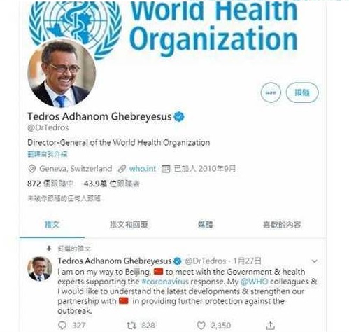 譚德塞在推特發文表示,正在前往北京途中,準備與協助因應這波冠狀病毒疫情的當局和衛生專家會面。世衛想要了解最新發展,並強化與中國的合作進一步防範這波疫情。他認為,如果各國齊心協力,就有機會戰勝病毒。