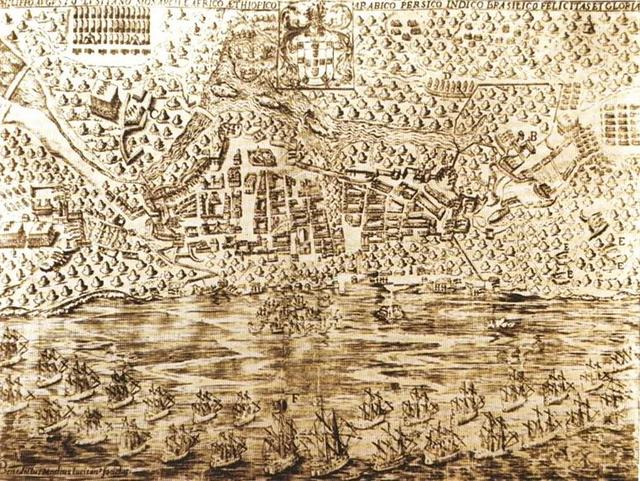 當年5月8日,荷蘭艦隊在毫無預兆的情況下抵達巴西,目標直指重要的巴伊亞州首府–薩爾瓦多。由於當時的帆船需要依仗季風進行長距離航行,這座位於南美大陸東部的優良海港,就是所有外部勢力所期望控制的核心。但那裏的葡萄牙守軍不過100多人,依靠城市的棱堡外牆和周遭其他小型堡壘支撐防務。港內大都停泊著忙於卸貨裝載的商船,並有幾艘老式的卡拉維爾輕型帆船保護。完全無法與荷蘭人在海上進行正面抗衡。