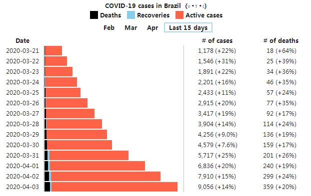 除了社會知名人士和民間組織外,巴西政府同樣已經頒佈應急措施。巴西衛生部表示,自7日起,將開始為非正式工人提供救濟金——每月600黑奧,為期三個月。政府將投入980億黑奧,此項措施將使全國5400萬人受益。