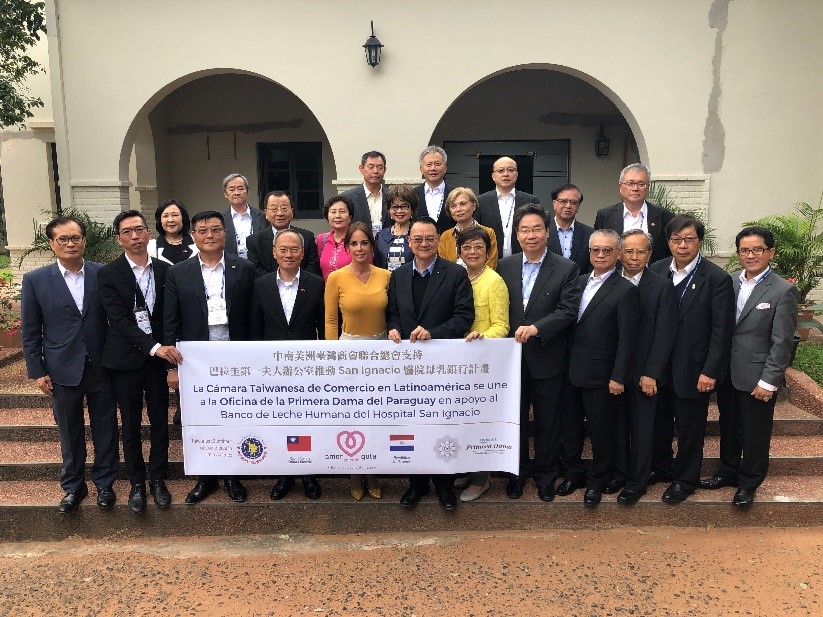 中南美洲臺灣商會聯合總會2019年6月捐款4萬美元,支持巴國第一夫人推動的母乳銀行計畫,吳新興委員長(前排左四)應邀出席見證