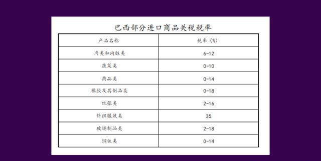 巴西的進口關稅稅率介於0-35%之間,平均關稅22.27%,約58%稅目的稅率在10%到20%之間。