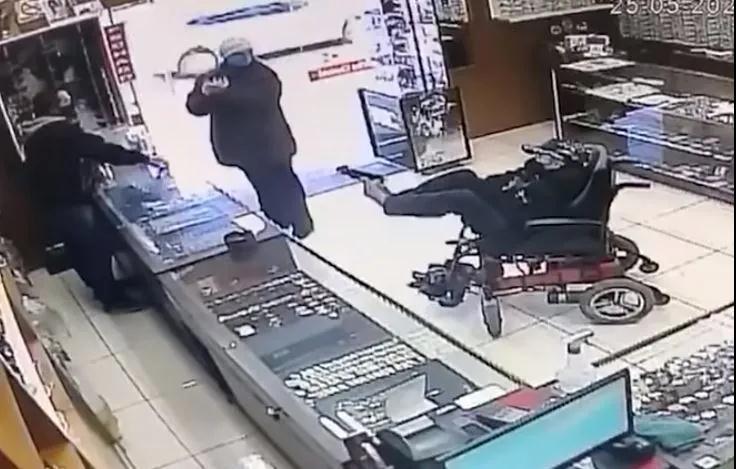 據新聞報導,巴西近日發生一起不尋常的搶劫案,一名身障男子坐著輪椅,前往當地一家珠寶店搶劫,過程中,男子還伸出雙腳「握住」一把手槍,和店員對峙,場面相當驚險,事件經由媒體披露後,引發網友熱議。