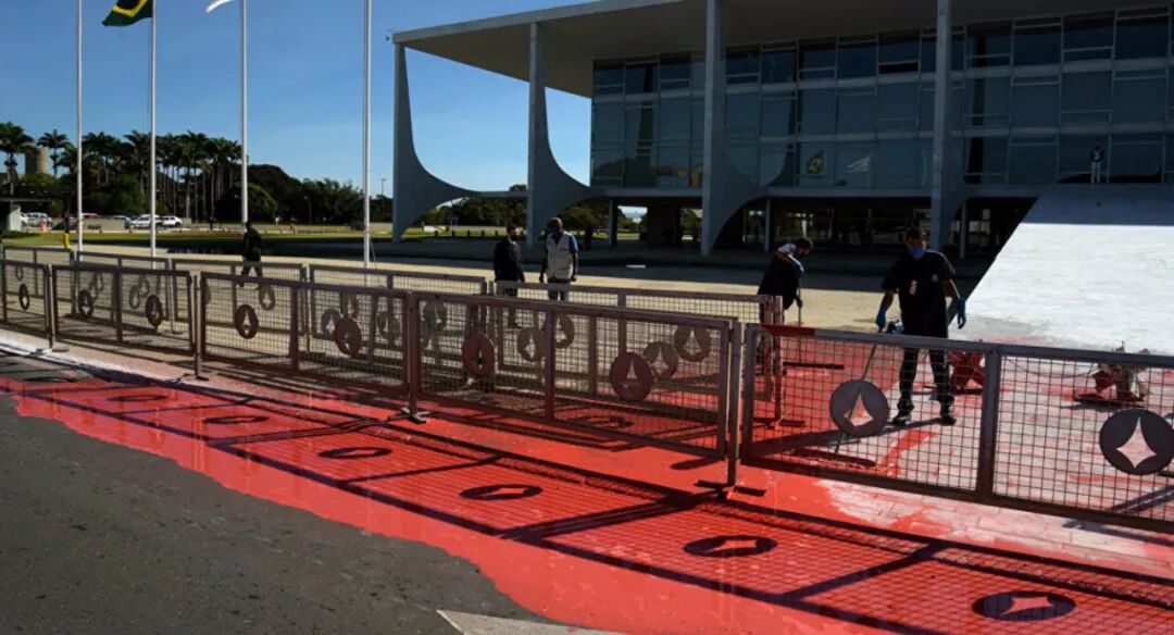 據巴西媒體報導,聯邦區軍警逮捕了一名29歲的男子於週一(8日)在普蘭納爾托宮(Palácio do Planalto)前潑灑了一桶18升的紅色油漆。