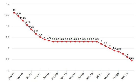 巴西中央銀行貨幣政策委員會(Copom)於本週三(17日)將巴西基準利率從每年3%降至每年2.25%。這是巴西第八次連續降息。降息的決定得到一致通過。