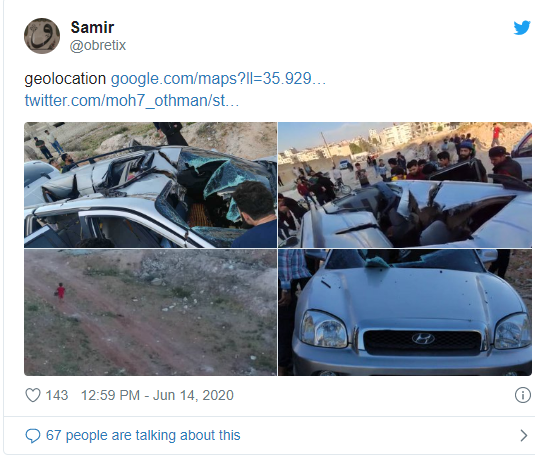 比如在6月14日的Twitter,在敘利亞伊德利卜省就有此類襲擊,一輛汽車被擊穿,車頂似乎被巨大的刀子給切割,但是2公尺外的另一輛車則沒有遭到波及。