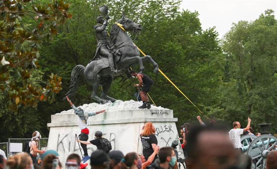 報導還稱,還有一群示威者聚集在白宮附近的拉法葉廣場,試圖拉倒一座美國第7任總統安德魯.傑克遜的雕像。
