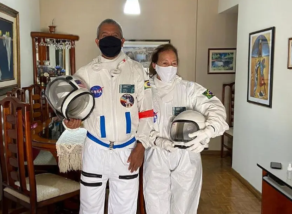 已經習慣了老伴半輩子突發奇想的加爾迪諾太太最終也被丈夫說服,穿上了他為自己縫製的情侶防護服。如今身著防疫太空服的夫妻倆在里約街頭一出現,就成為人們熱議的焦點。