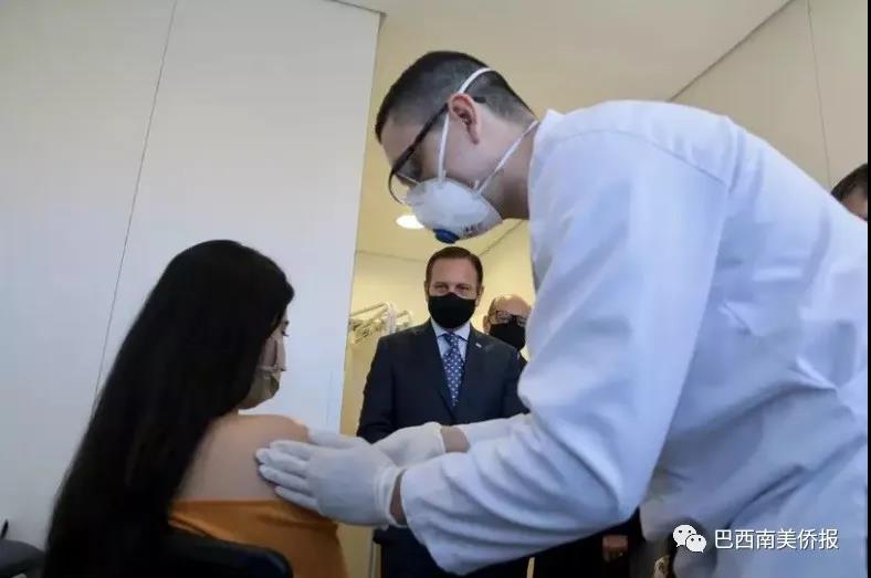 聖保羅州(SP)州長若昂·多利亞(João Doria)21日宣佈,中國科興控股生物技術有限公司(Sinovac)研製的新冠疫苗在巴西的測試正式啟動。來自聖保羅大學醫學系臨床醫院(HC)的27歲巴西醫生斯蒂芬妮·特謝拉·波爾圖(Stefania Teixeira Porto)成為首位接種者,她稱這為其注入了勇氣和力量。
