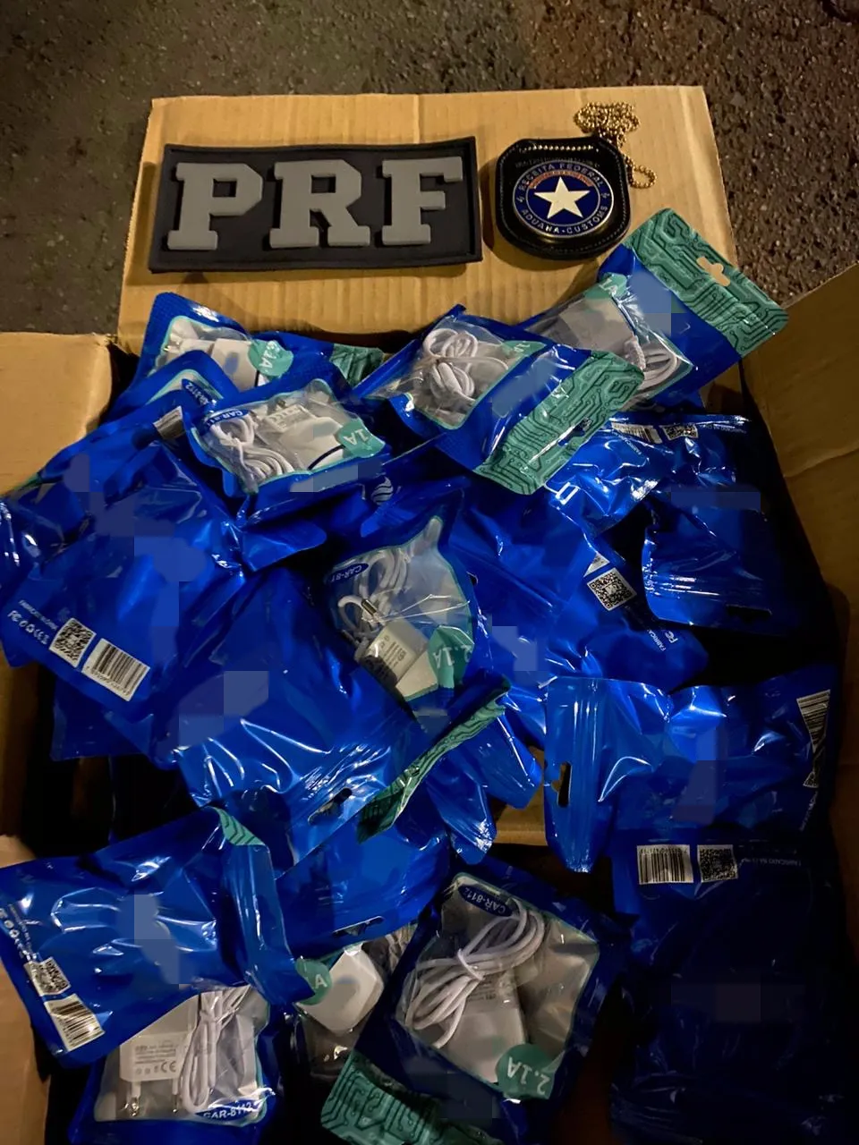 車內貨物價值超過20萬黑奧,主要是未經Anatel認證的手機充電器。