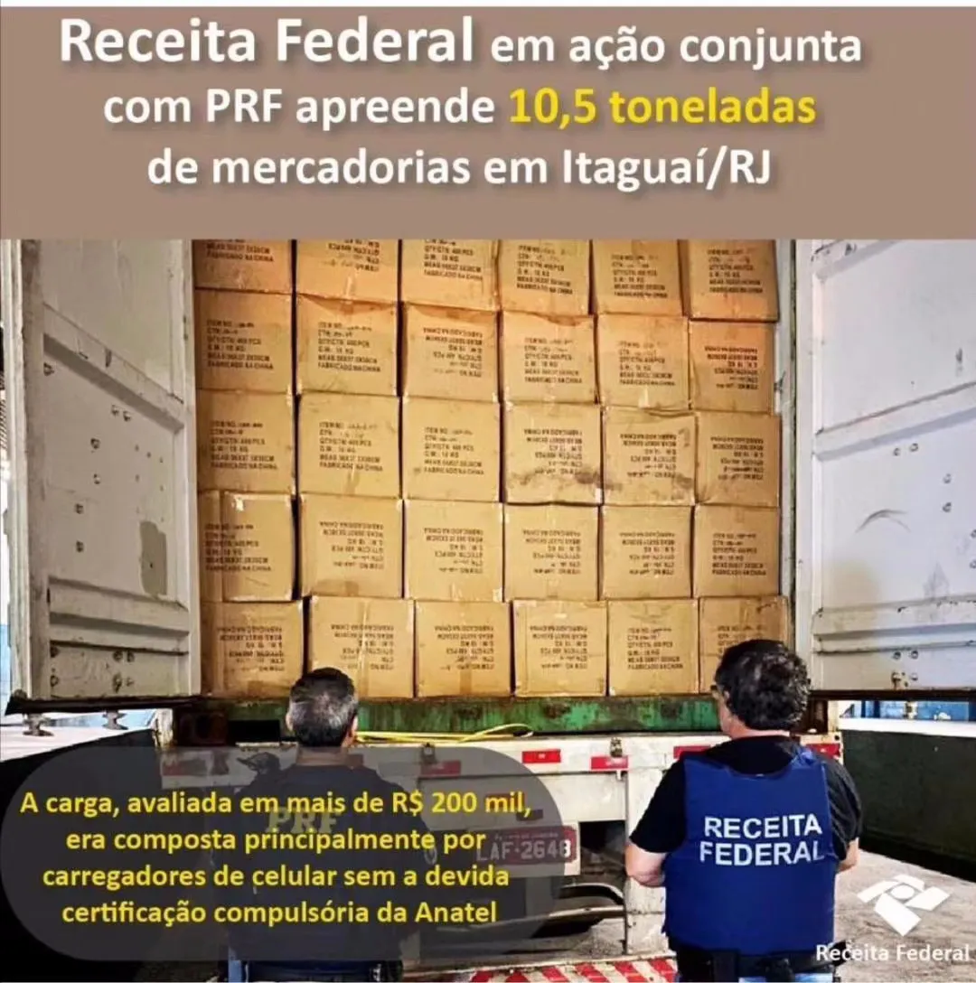 據巴西媒體報導,聯邦稅務局(receita federal)在第七區域監管局(SRRF07)和聯邦公路員警的聯合行動中,於本週一(20日)晚上10點左右在里约Itaguaí的高速公路(BR-493)查獲一輛載滿10.5噸中國違規貨物的卡車。