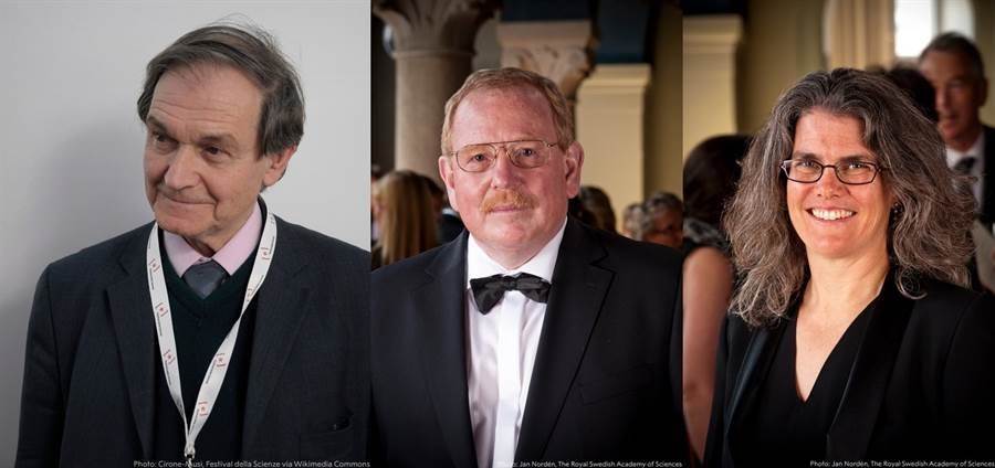 2020諾貝爾物理學獎,由潘洛斯(左)、詹澤爾(中)以及蓋茲3名學者共享,他們揭開宇宙的黑洞奧秘。
