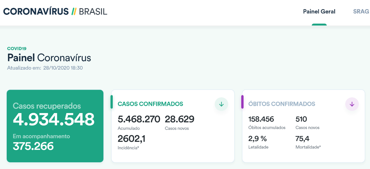 《疫情速報》截至週三(28日),巴西單日新增確診病例28629例,累計確診5468270例,新增死亡病例510例,累計死亡158456人,治癒人數為4934548人。